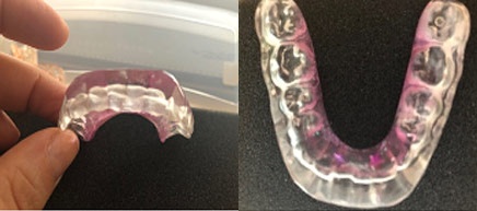 Η ακρυλική ρητίνη, που είναι το υλικό απ’το οποίο κατασκευάζεται ο νάρθηκας, είναι λιγότερο σκληρό απ’την αδαμαντίνη των δοντιών, οπότε, εκτός από τη θεραπεία για τον πόνο, αυτός ο νάρθηκας είναι απαραίτητος για την προστασία των σκληρών οδοντικών ιστών (αδαμαντίνη, οδοντίνη) από περαιτέρω αποτριβή, αλλά και των υλικών αποκατάστασης (πορσελάνη) από μικροσπασίματα, λόγω των υπερβολικών δυνάμεων στις περιπτώσεις έντονου βρυγμού.